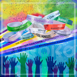 Ibraccialetti in tessuto sono una delle fasce d'ingresso più conosciute. Questi braccialetti per festival sono utilizzati soprattutto in occasione di festival, eventi e balli di lunga durata. È il modo più sicuro per identificare le persone in un breve periodo di tempo.