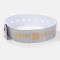 Scegli i nostri braccialetti identificativi in plastica vinile con stampa a un colore: standard, metallico o neon. Inviaci il tuo slogan, logo o grafica via e-mail e ti forniremo un progetto grafico gratuito.