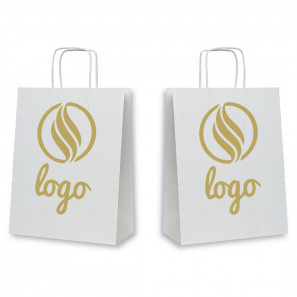 Borse di carta stampate direttamente dal produttore! Acquista borse di carta stampate singolarmente da Euroko! Nella nostra offerta puoi trovare diversi tipi di prodotti, ma puoi anche scegliere i sacchetti per le bevande. I sacchetti di carta con le orecchie ritorte sono i prodotti più conosciuti di questa categoria. Il materiale di base è di alta qualità e il suo colore è marrone naturale.